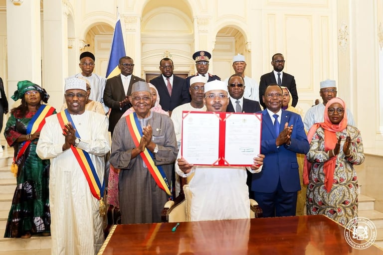 Récemment, la signature du Maréchal Mahamat Idriss Déby Itno sur le document voté par l'Assemblée Nationale et approuvé par le Sénat a marqué une étape cruciale dans son projet de conduire le Tchad vers une prospérité durable. Ce geste symbolique ne se limite pas à une simple formalité administrative ; il représente une volonté politique affirmée de poursuivre des réformes et d'engager le pays sur la voie du développement.